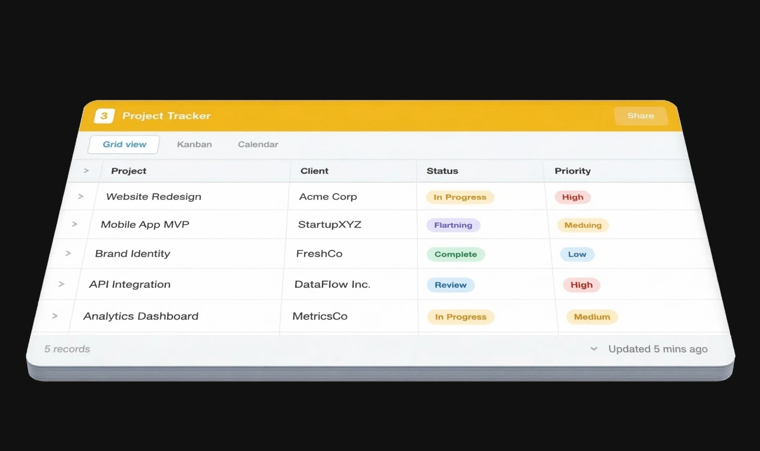 - Les interfaces d'Airtable sont rudimentaires : pas d'applications mobiles natives, pas de publication sur l'App Store